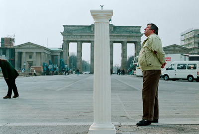 Säulenwanderung, Schilder, und Schnappschüsse von Kunstaktionen